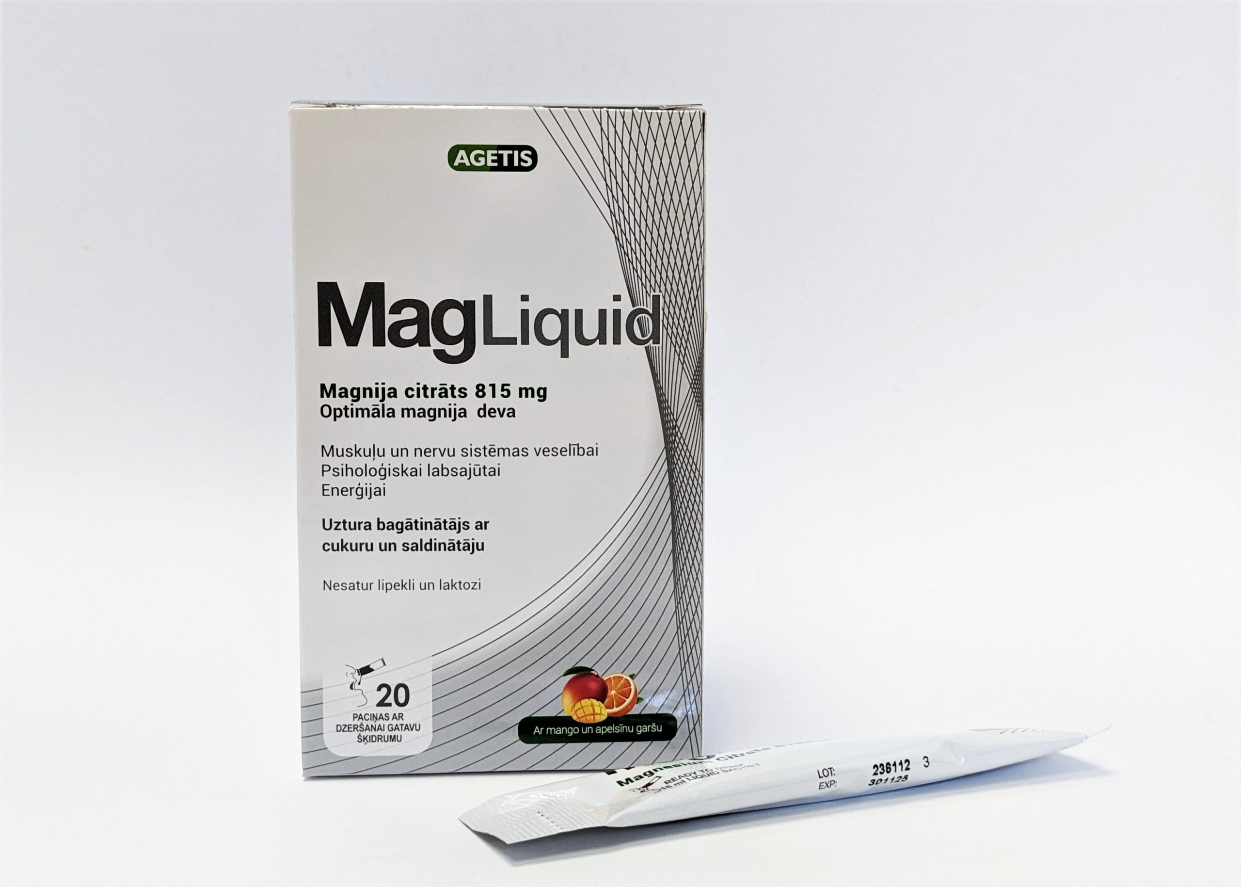MagLiquid paciņās ar dzeršanai gatavu šķidrumu satur magniju (magnija citrāta formā) un tā pagatavojuma veids (šķidrā forma) nodrošina ātrāku un labāku magnija uzsūkšanos organismā.